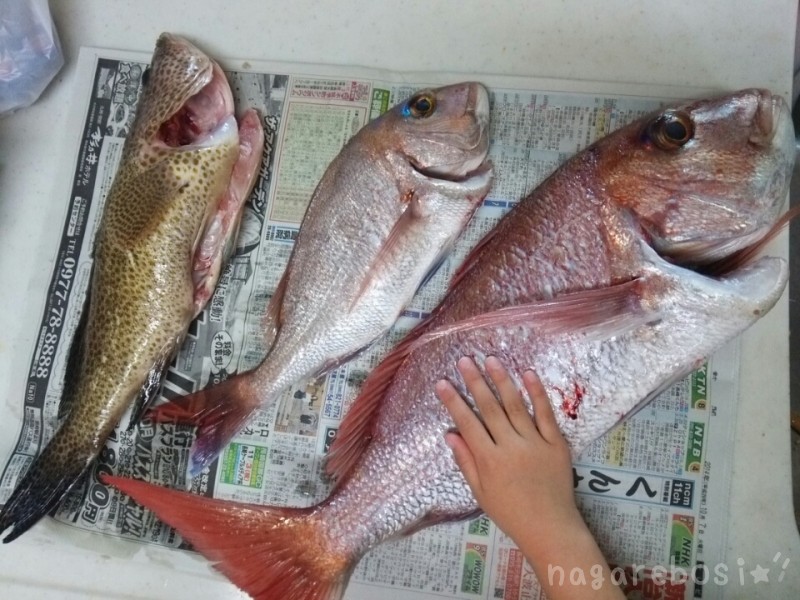 突然やって来た、スペシャルサイズの鯛とハタ。